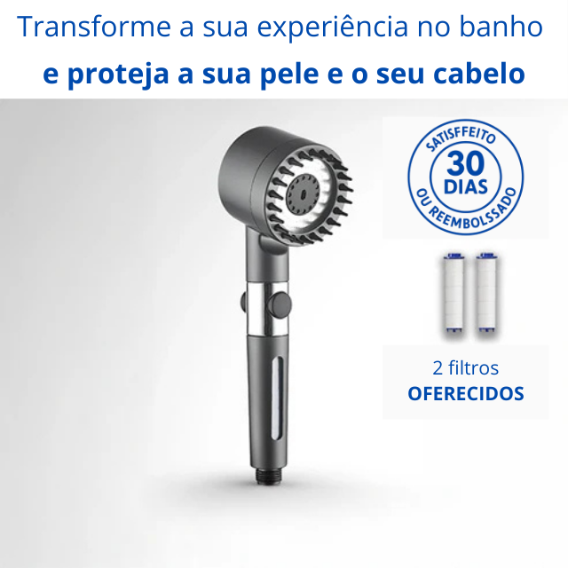 Purifique a sua água hoje mesmo e ajude a revitalizar a sua pele e cabelo, eliminando o óleo e os resíduos de cloro da água.