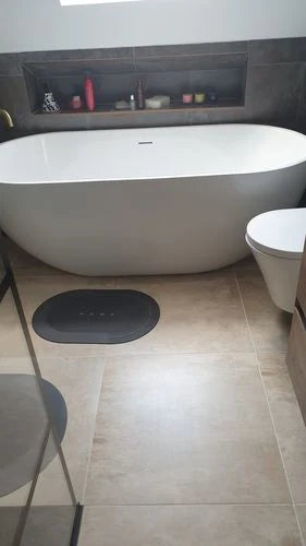 A sua superfície suave e agradável ao toque torna cada saída do chuveiro confortável, evitando poças de água no chão.